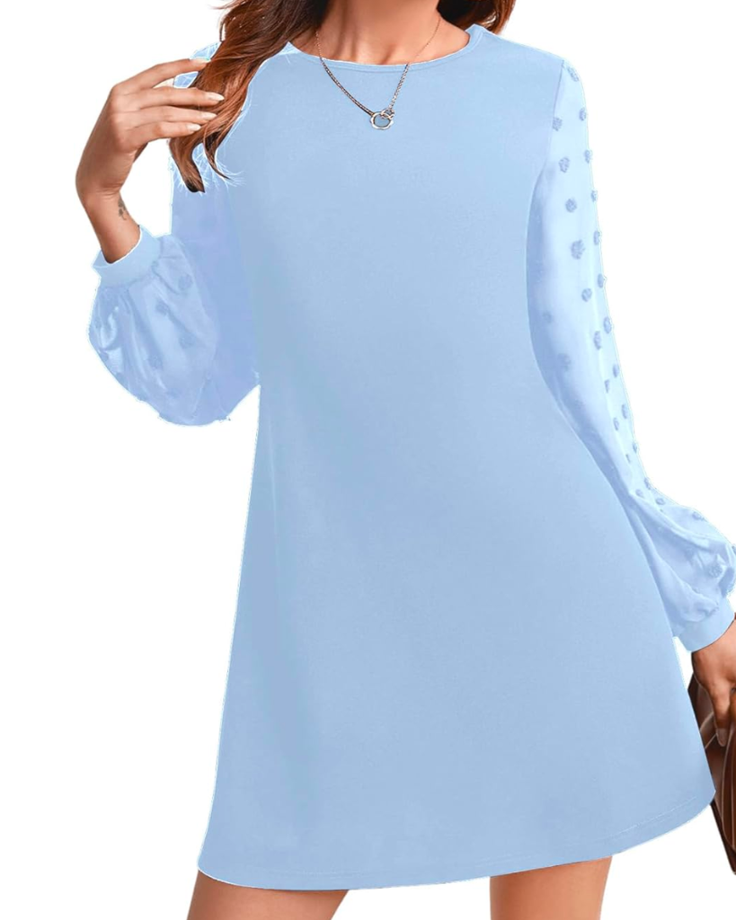 SweatyRocks Elegant Mesh Contrast Long Sleeve A Line Mini Short Dress