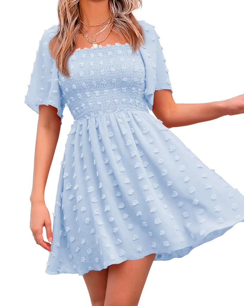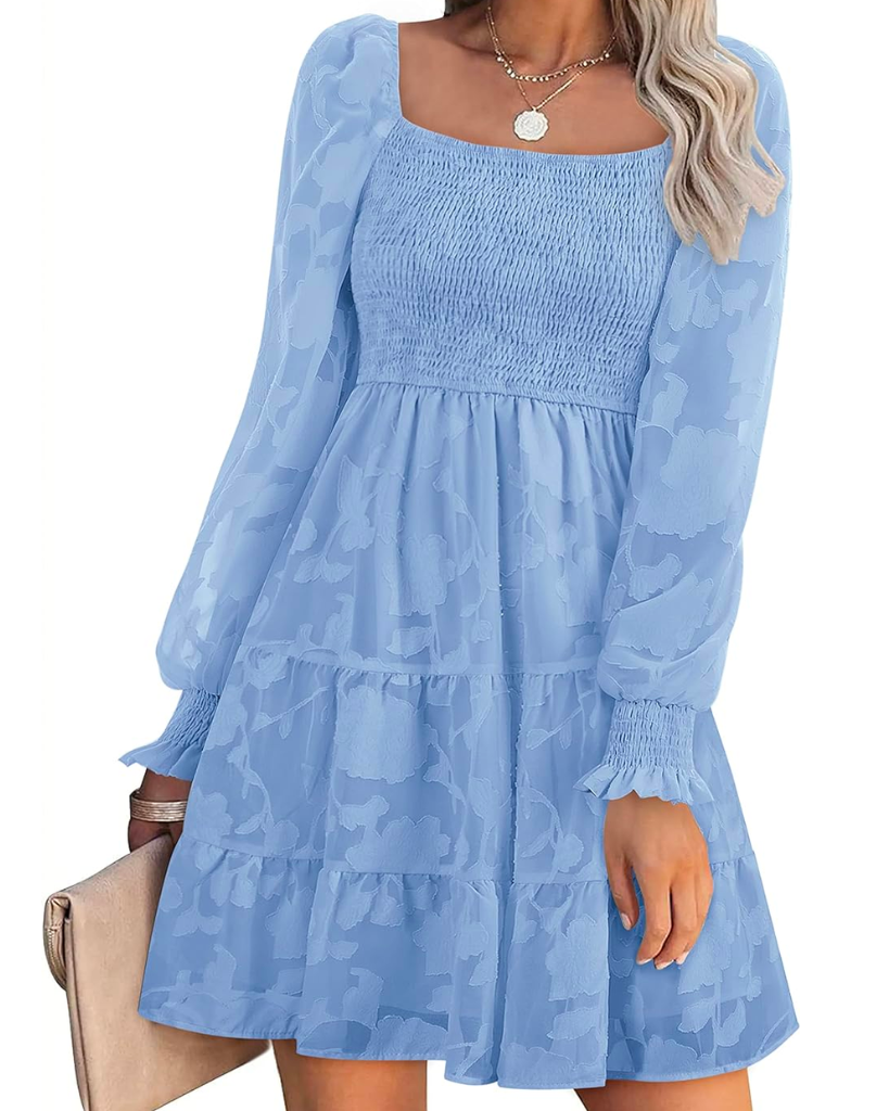 BZB Lantern Sleeve Smocked Mini Babydoll Dress