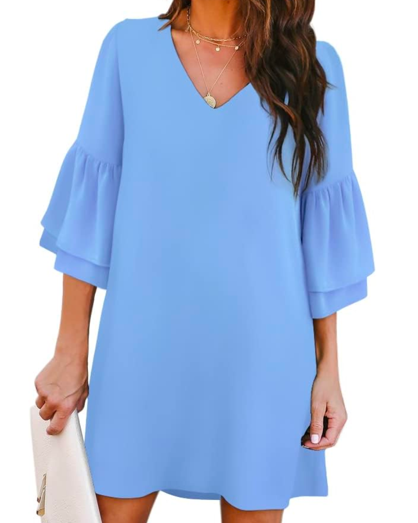 BELONGSCI V-Neck Bell Sleeve Shift Mini Dress