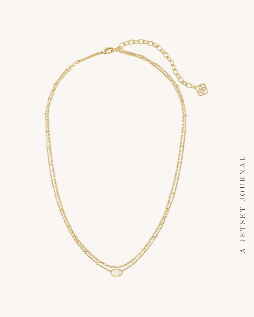 For a gold necklace that you can wear with just about anything, shop the Kendra Scott Emilie style multi strand necklace. It’s perfectly dainty and simple to match with all of your outfits.