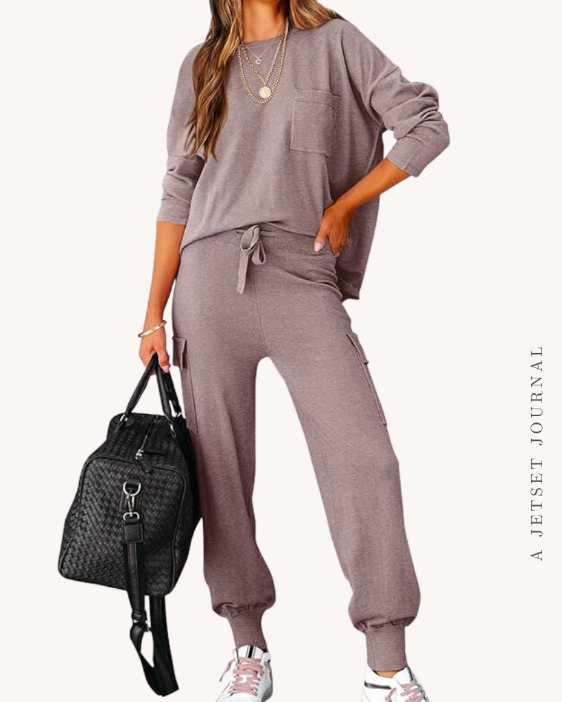 You can never have too many lounge sets, right? 🙂 This one from Caracilia brand on Amazon is insanely comfortable. I love the cargo jogger style pants – totally trending right now!