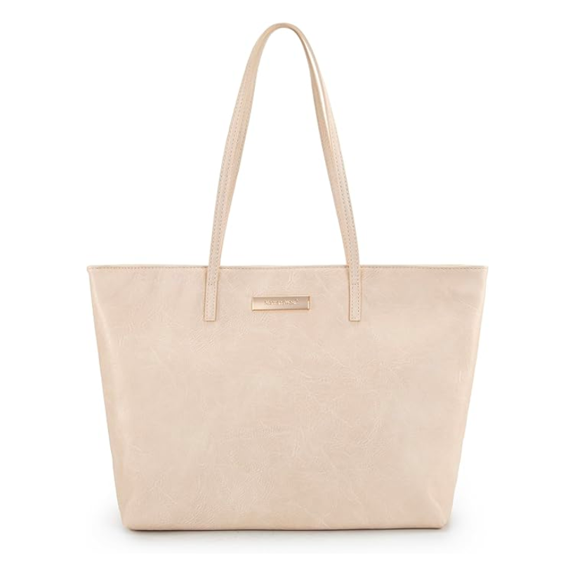 Kattee Vintage Genuine Leather Tote Shoulder Bag holds so much and has adjustable straps! Plus I love how sleek the leather looks. It even has a smaller back pocket for your phone which is super convenient.