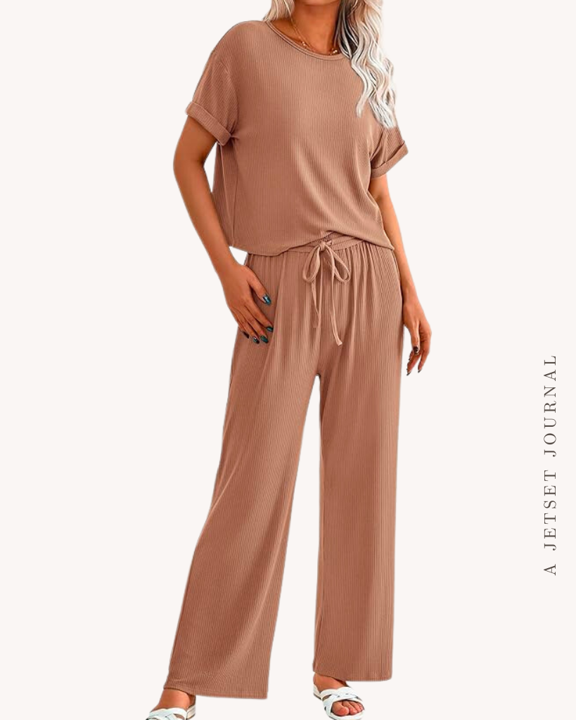 Another great find from PRETTYGARDEN is this two piece lounge set! It’s so soft and comfortable, I never want to take mine off. I like that it’s a short sleeve t-shirt with wide leg pants to match, and it comes in a bunch of different color options to choose from.