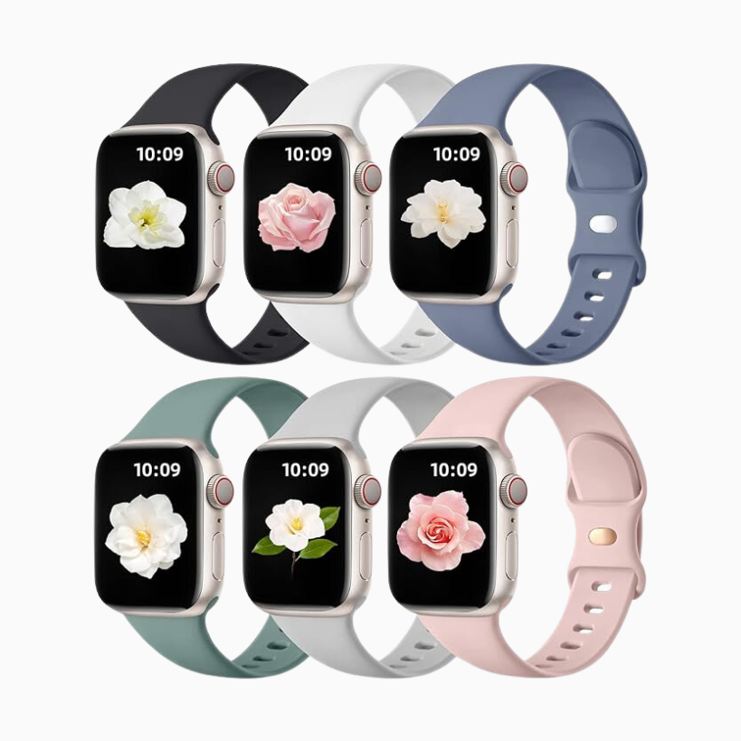 I love a good silicone band for day to day wear. Amazon has so many good ones that come in an affordable set! That way, you can change up what color band you’re wearing to match your outfit. I love the woven silicone look, or the engraved floral bands are SO pretty!