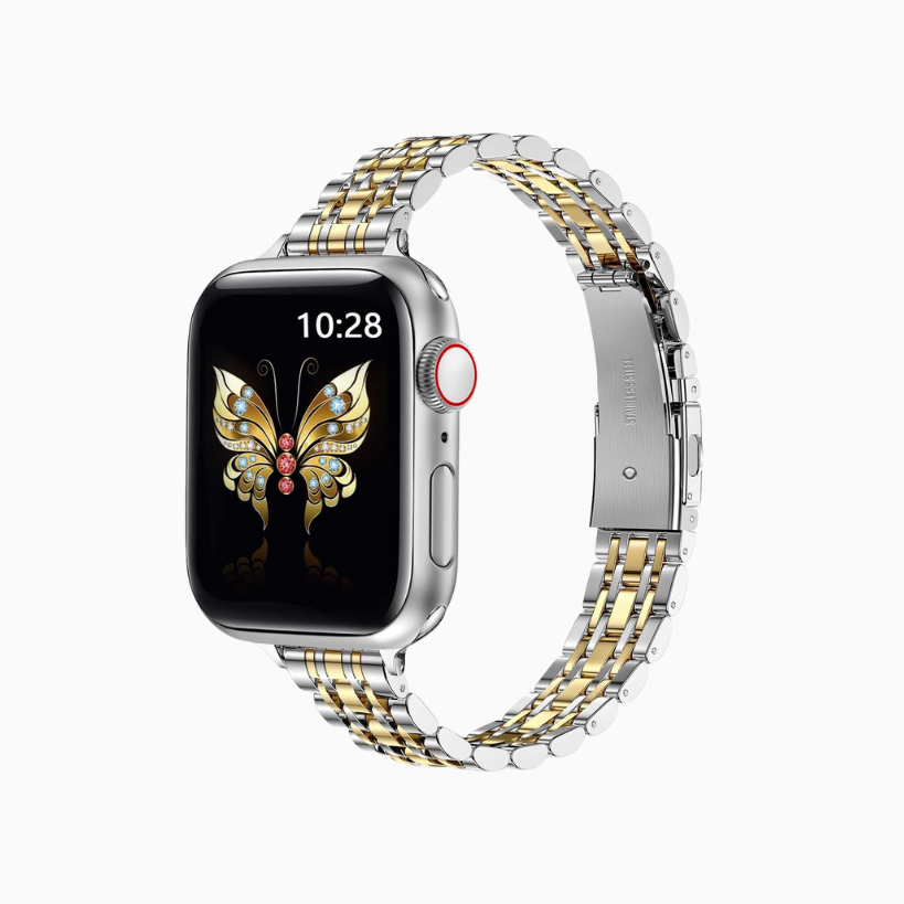 A metal band will totally dress up your Apple Watch to wear with nicer outfits or to events. I personally love the mixed metal band because then you can match with silver or gold accessories and jewelry! Another pretty option is the mesh metal design, it gives such a nice detail to your Apple Watch and has it look more like a piece of jewelry.