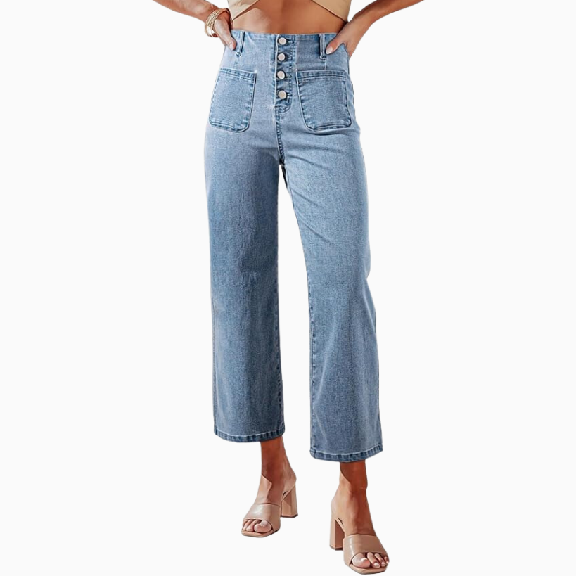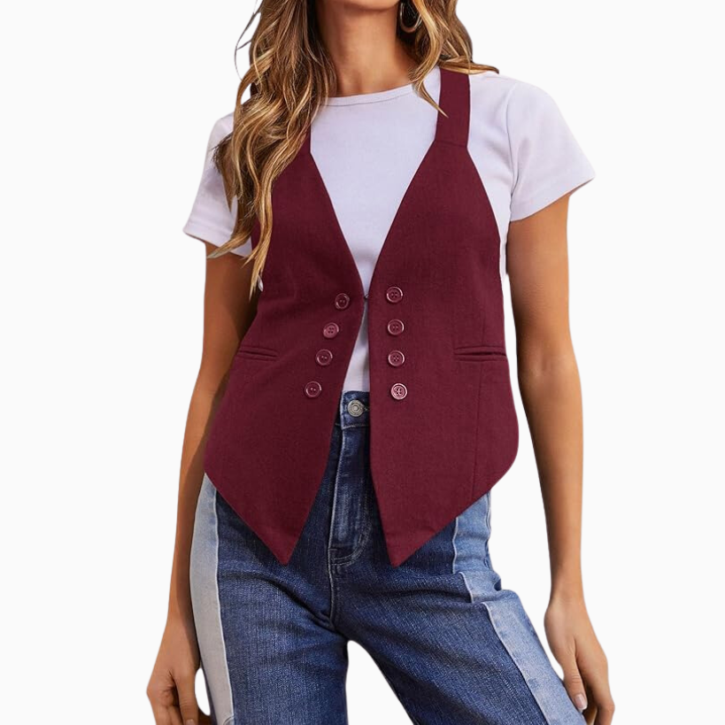 Here’s another outfit option: take these high waisted jeans and a basic white tee. Then, wear this button up vest over top. Just adding that layer transforms the entire look from basic to super stylish!