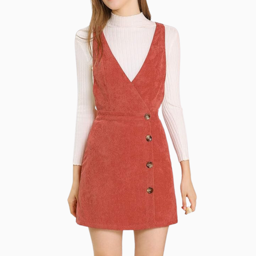 You can easily mix and match some of these styles to create different super cute outfits! Take this long sleeve ribbed knit top with a high neck, and layer underneath these adorable burgundy overalls. Or you can layer it under this corduroy mini dress! Add a pair of these chunky ankle boots or lace up combat boots and you’re set. You can even add this hat for a festival accessory!