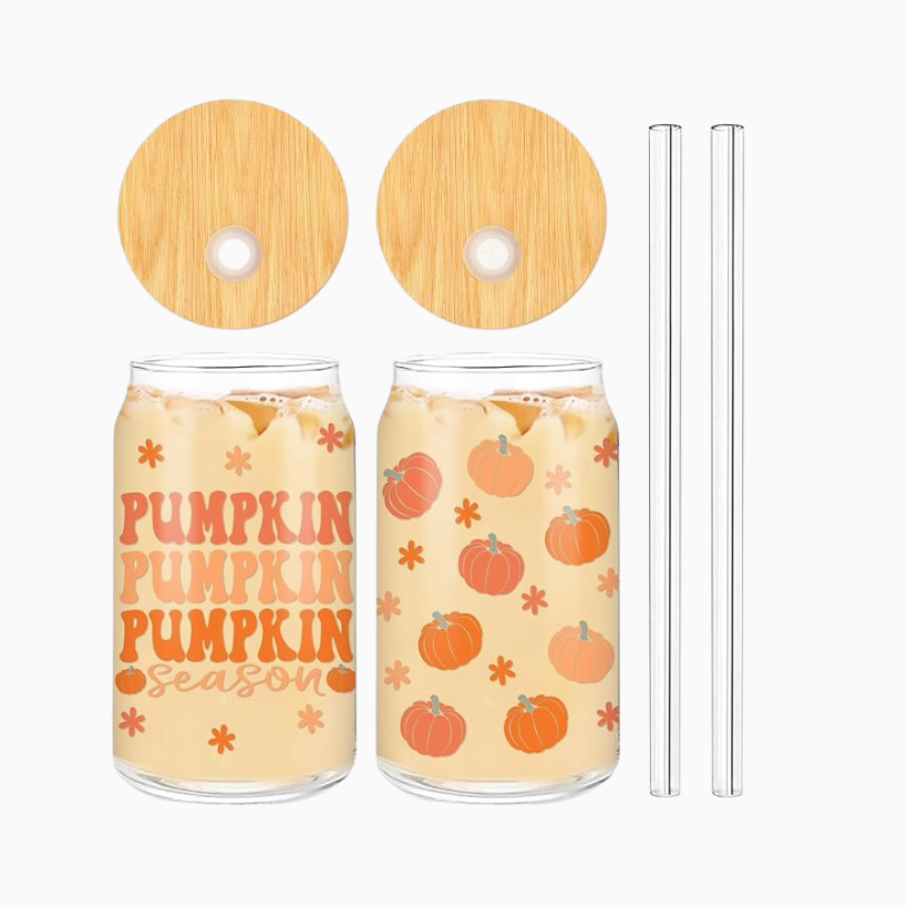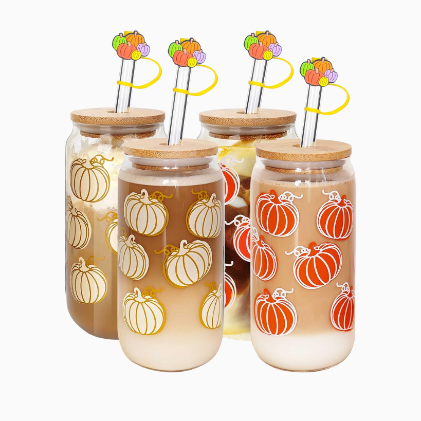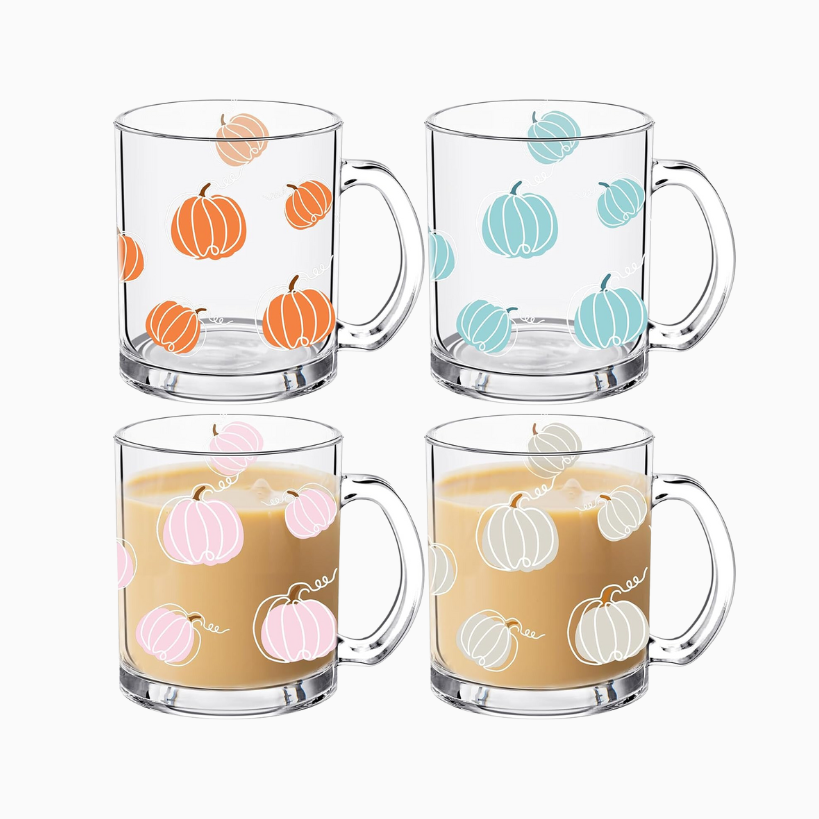 For some seasonal mugs to enjoy coffee or tea and home, Amazon has tons of options. For hot coffee or tea I really like this simple “Hello Fall” neutral mug, or this set of mugs with gourds and pumpkins on it. There are so many cute ones in here! For iced beverages, I love these glass cups with bamboo lids and a glass straw to match.
