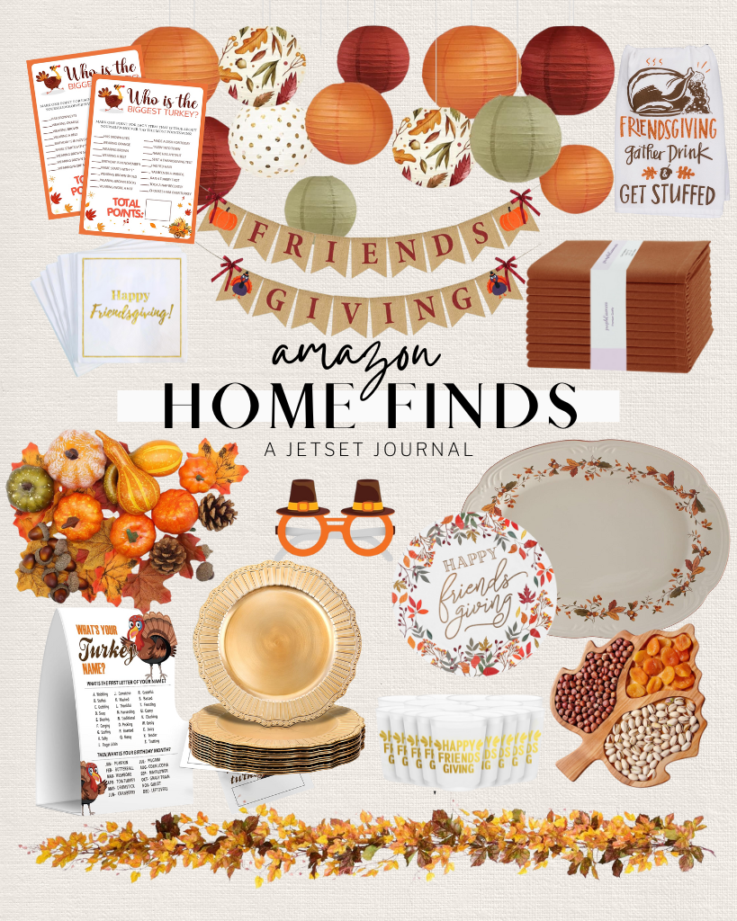 One of my favorite traditions is getting all of our friends together during the Thanksgiving season and hosting a Friendsgiving at home. It’s such a fun way to spend the evening eating, drinking, playing games, and having fun with the friends you love to be around. Here are a bunch of cute Amazon finds that would be perfect for hosting Friendsgiving this year!