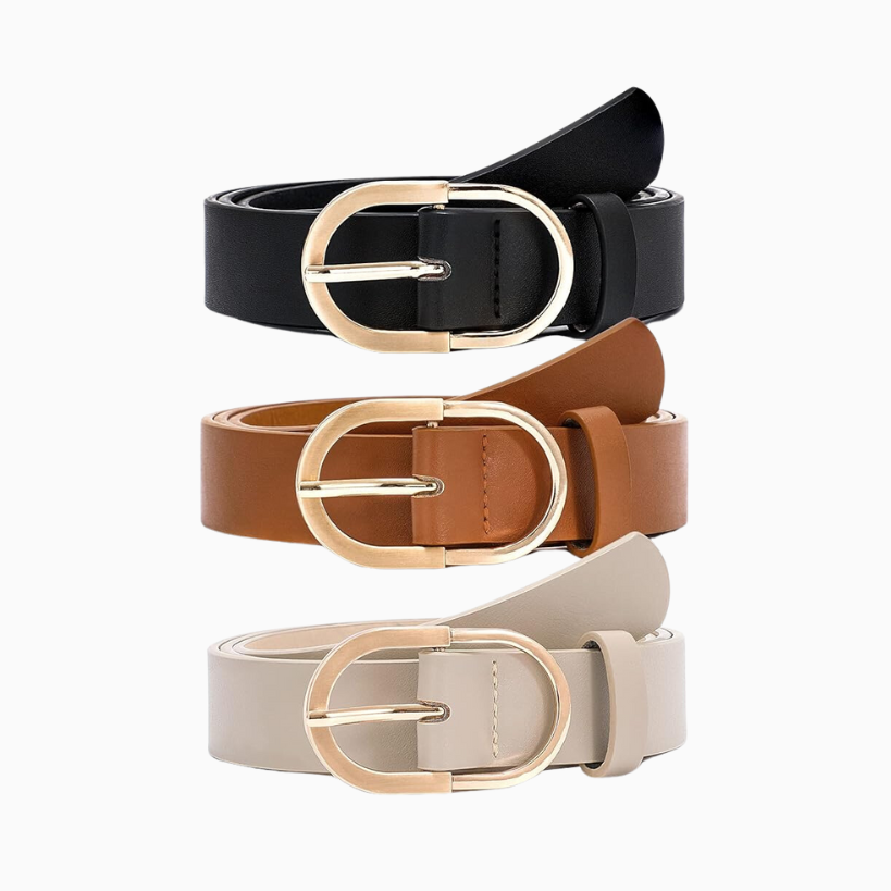 Belts are something that really transforms your look. By tucking in your shirt to a pair of your favorite jeans or trousers, and then adding a belt, you have a whole new vibe going! This belt style is classic and the perfect width to go with just about anything. Plus, they come in a pack of three: black, brown, and beige. What more could you need!?