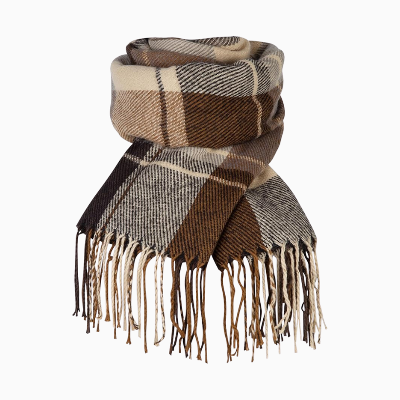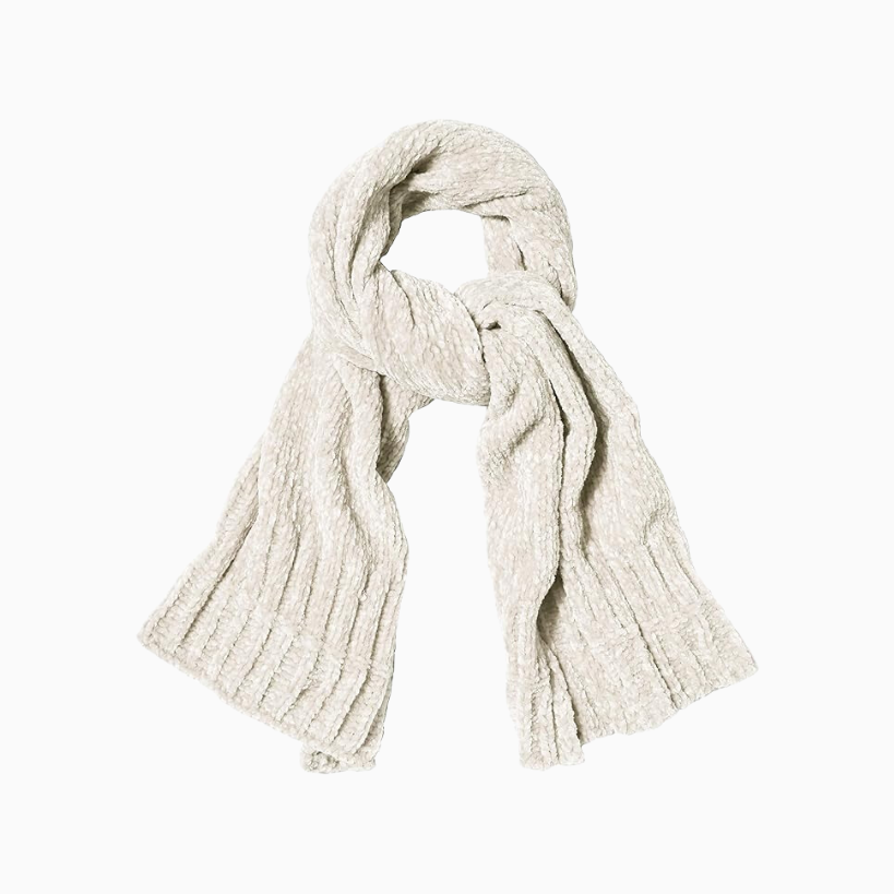 Add a scarf to any look to keep you warm and give your outfit some added color or texture. I like a simple white knit scarf for a dressier look, and something like this classic plaid scarf for everyday wear.