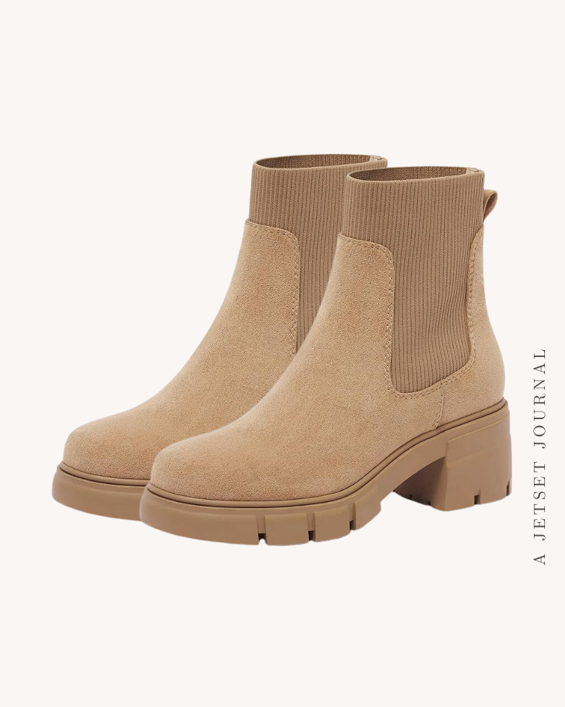 Starting with accessories, for those colder days add a Carhartt knit beanie to keep yourself warm (and not have to worry about fixing your hair, win win!). Grab a set of crewneck socks to wear with your ankle boots, too. They’re so much more comfortable. For a classic pair of ankle boots, shop these Chelsea style neutral boots that will match with anything.