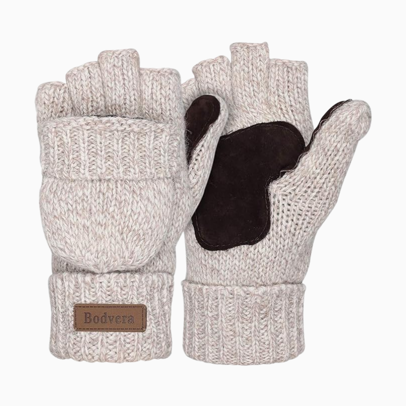 For some cold weather accessories, shop this knit beanie in a neutral color that you can easily throw on before heading out the door. Add a cozy scarf that you can wear out and about too. You’ll be nice and warm with these functional accessories while looking totally put together.