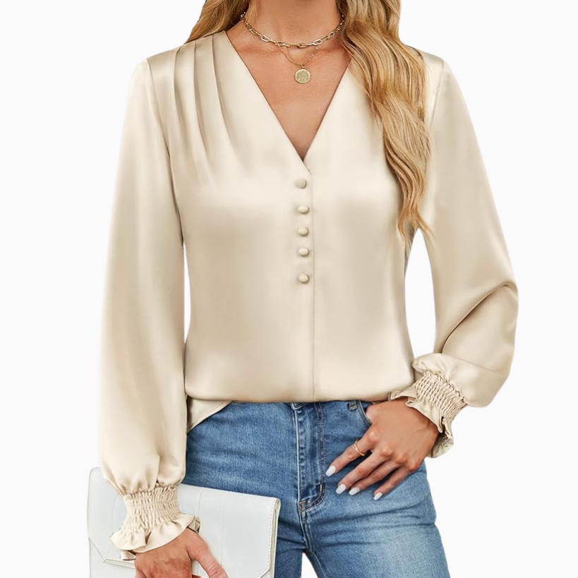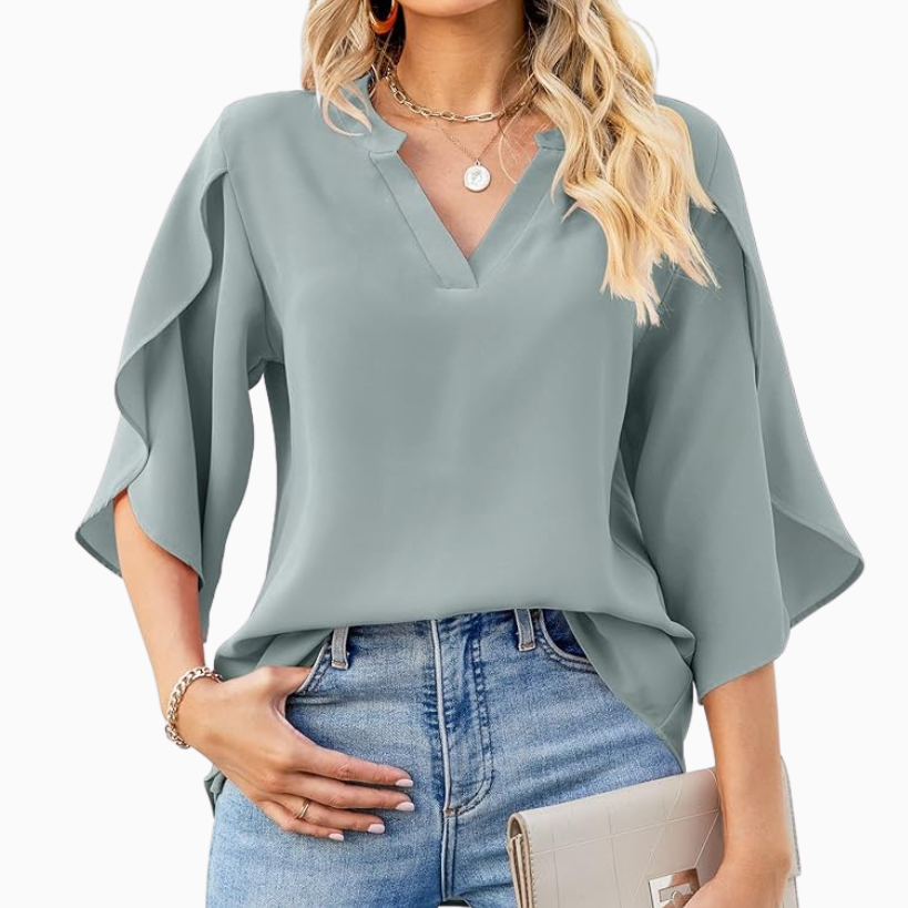 There are some gorgeous blouses in this week’s post! I’m loving this light teal color blouse that has a v-neckline and flowy sleeves. It’s so cute and would look great with khaki trousers or even jeans to wear outside of the office. Same with this satin blouse. I love the button down look and the cinched in wrists. It’s so gorgeous and looks like it should be super expensive, when it’s not!