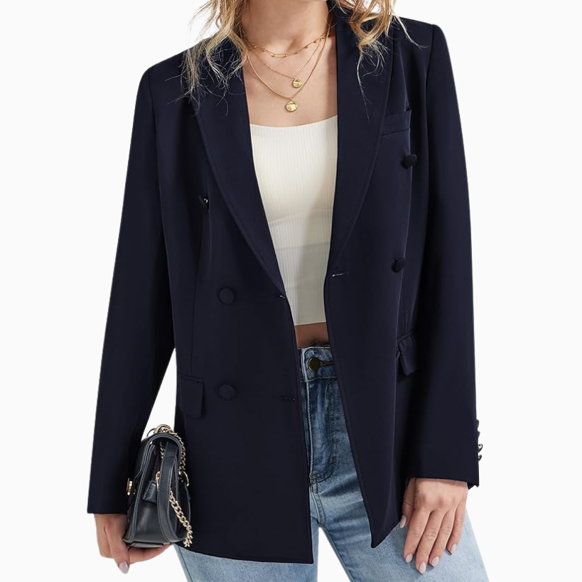 Having layers for your commute into work is important. Check out this button down trench coat with a tie waist belt. Or this classic black blazer that you can wear on cooler days and keep on in the office.