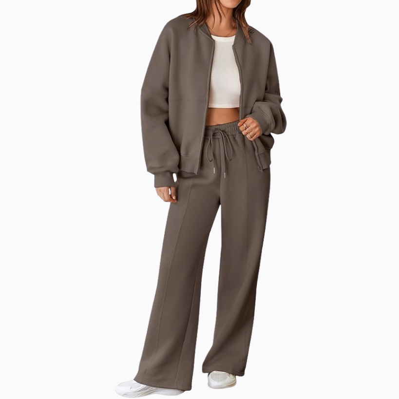 A matching set is always a go to outfit and having something that’s insanely comfortable while also helping you look stylish and put together is a win win! I love this cropped hoodie with matching joggers. Or this zip up jacket with matching wide leg pants. Both are so good and I wear them constantly!