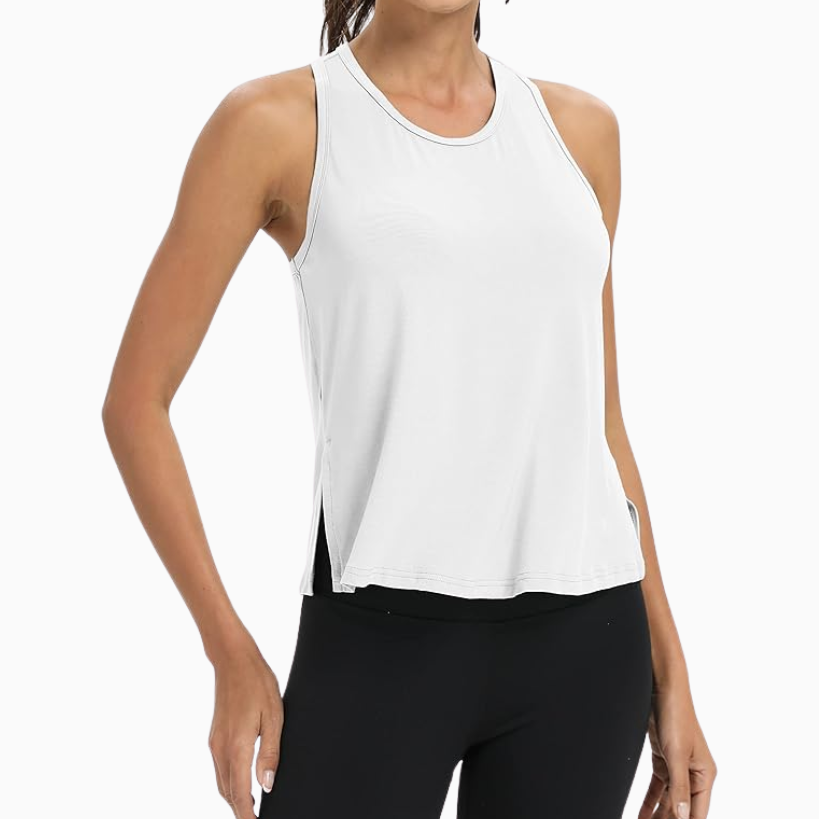 For workout gear, I love a pair of buttery soft leggings like the ones I have linked here. They stay in place and are super comfy. Add a flowy tank top and you’ll be wearing a comfortable look while getting a good workout in. You can also shop for a long sleeve option like this zip up fitted long sleeve if your’e exercising outdoors.