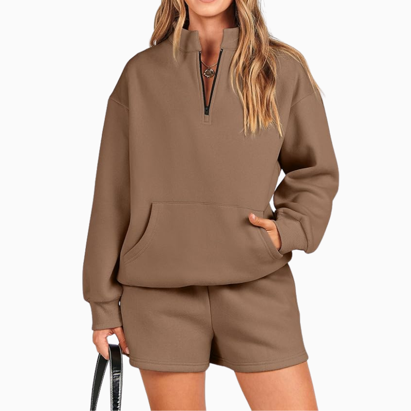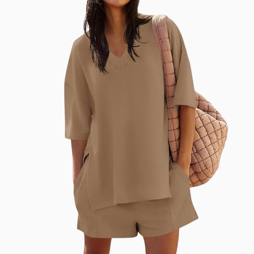 Starting with sets. This long sleeve fitted tee and matching wide leg pants has been going totally viral lately, and for a good reason! It’s such a classic fit that you’ll reach for over and over again. If you like a looser fit, this oversized short sleeve tee with matching cargo joggers is adorable and comes in so many cute colors. For a matching set during the warmer months, I love this oversized short sleeve tee with matching shorts.