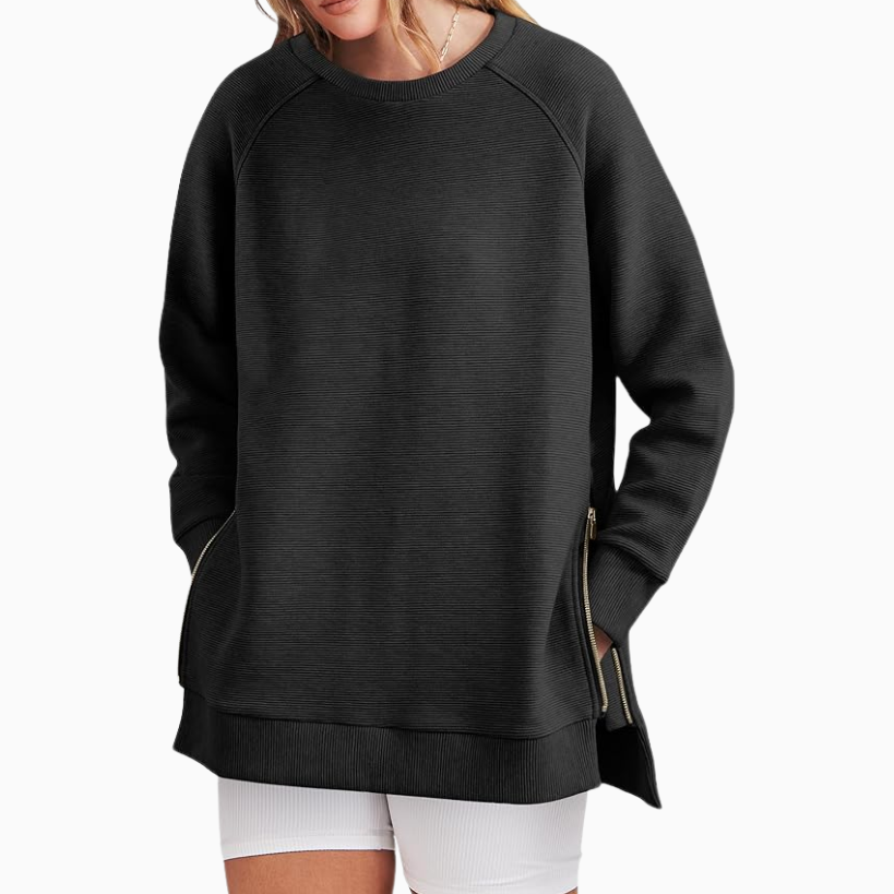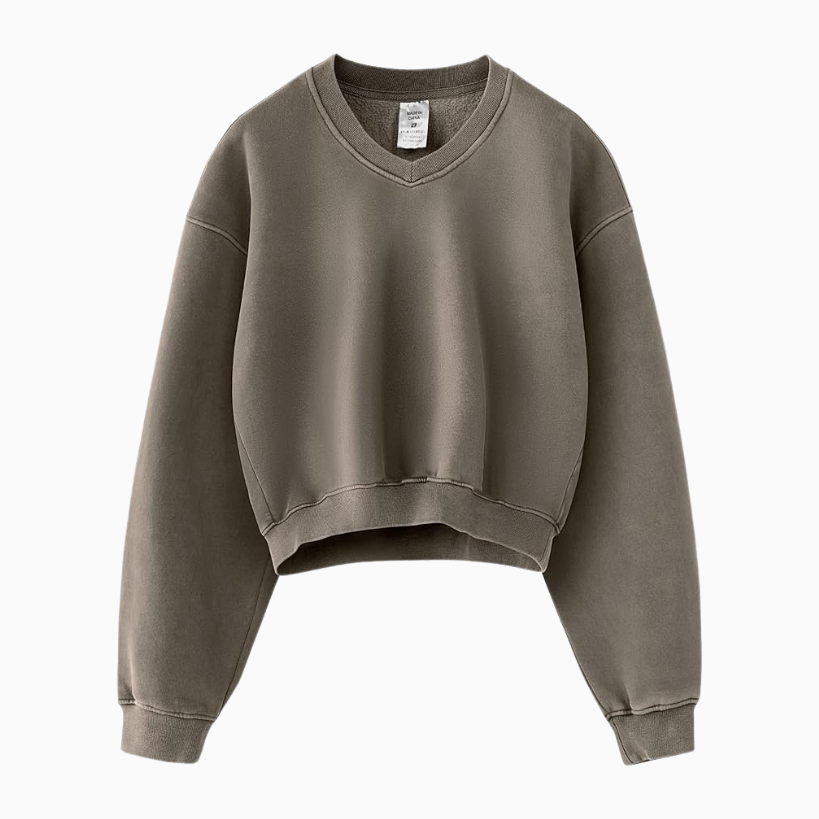 A favorite sweatshirt of mine is this classic v-neck cropped pullover. I have so many colors of this one! It’s such a good basic to have and can be worn with sweats, leggings, jeans, shorts, whatever you want. It definitely won’t disappoint.