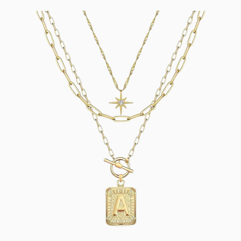 Style your matching set with a chic pair of sunglasses and some simple jewelry. I love metal frame aviators or a pair of oversized sunglasses to mix and match with different looks throughout the week. Then I’ve been loving this layered gold initial necklace and a pair of simple hoop earrings that you can get in a set on Amazon!