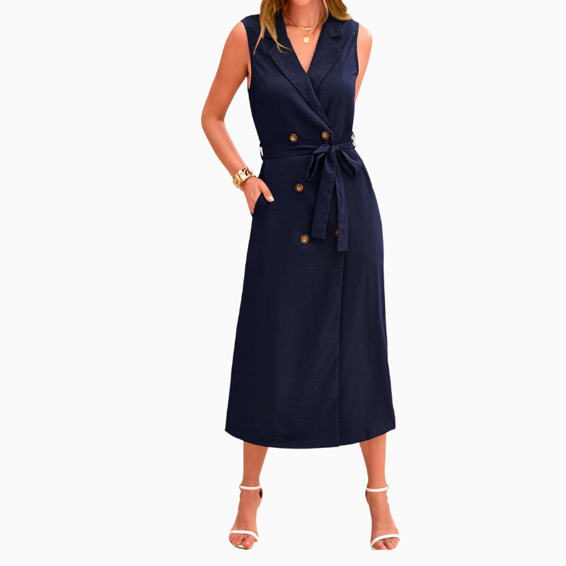 Mix it up by having some outfits with skirts/dresses and some with pants. These tailored straight leg high waisted trousers are stunning and would look so good with this white collared button down blouse with dramatic ruffled sleeves. I also love these cream wide leg trousers to wear with a blazer or a neutral flowy blouse. A fitted bodycon midi skirt will be a staple in your professional wardrobe. And finally, this sleeveless button down dress with lapel collar and tie waist is a STUNNING dress option.