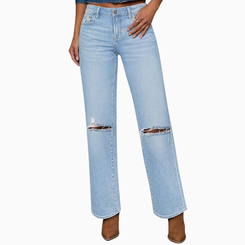 Grab yourself a new pair of affordable jeans. I’m loving these straight leg high waisted jeans. The light wash and distressed detail make them even cuter. They can easily be worn with a variety of different tops all year long.