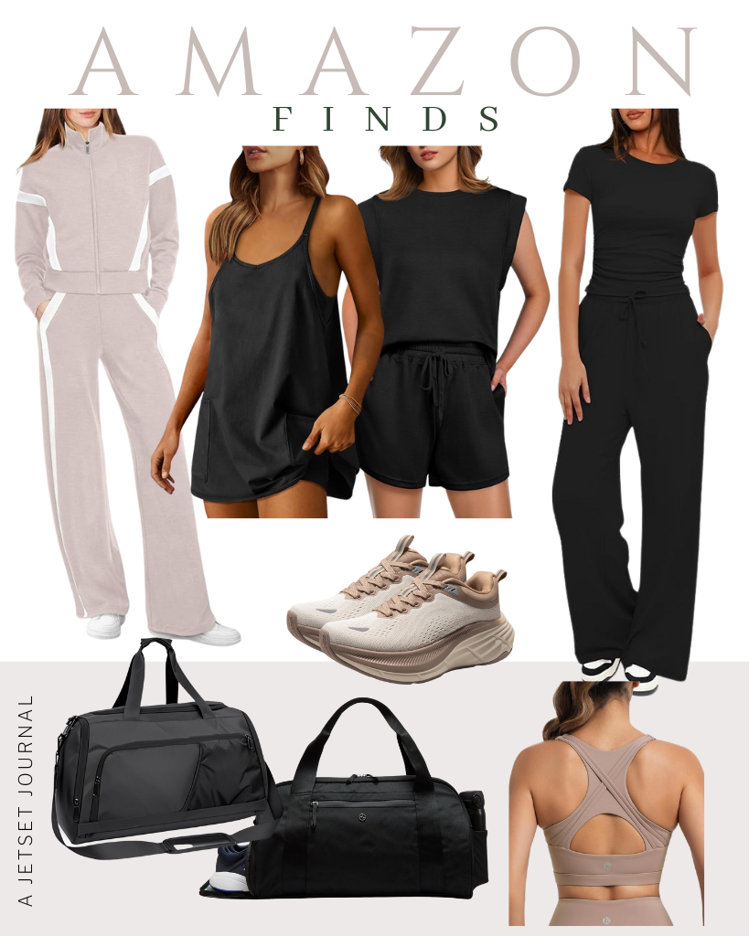 Grab some accessories to get a good workout in while wearing these athleisure fits. These neutral sneakers will match with so many outfits and are insanely comfortable while exercising. Amazon also has options for gym bags that hold everything, including an extra pair of shoes! Shop a few options for bags in this list.