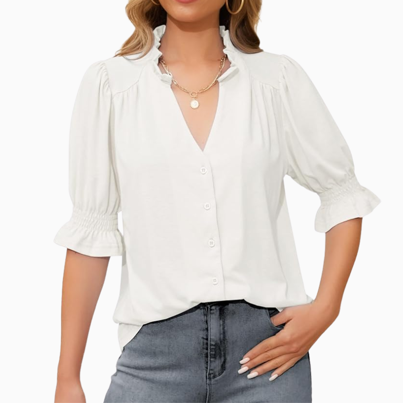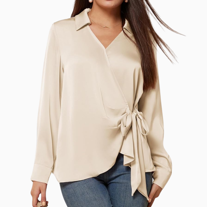 The right blouse can change up your entire look. I love this high neck long sleeve blouse with smocked detailing that makes it super flattering at the waistline, neckline, and wrists. I’m also a huge fan of this collared long sleeve with a slight v-neck and asymmetrical tie waist. I love the flowy look of this top while still giving you some shape with the elegant bow at the waistline.