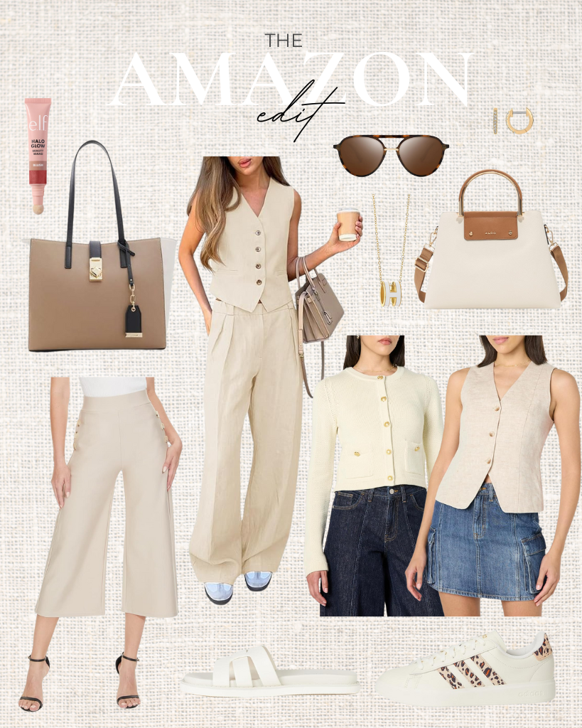 The Drop is one of my favorite fashion brands on Amazon! They always have such good quality pieces. Like this chic button down linen vest. Or this adorable cream cardigan with front pockets and pretty gold chunky buttons. It also comes in a black and striped color option. The Drop has great shoes, too! Like these Mila slide sandals that are perfect for warmer weather and come in different neutral colors to match all of your outfits.