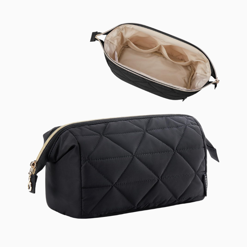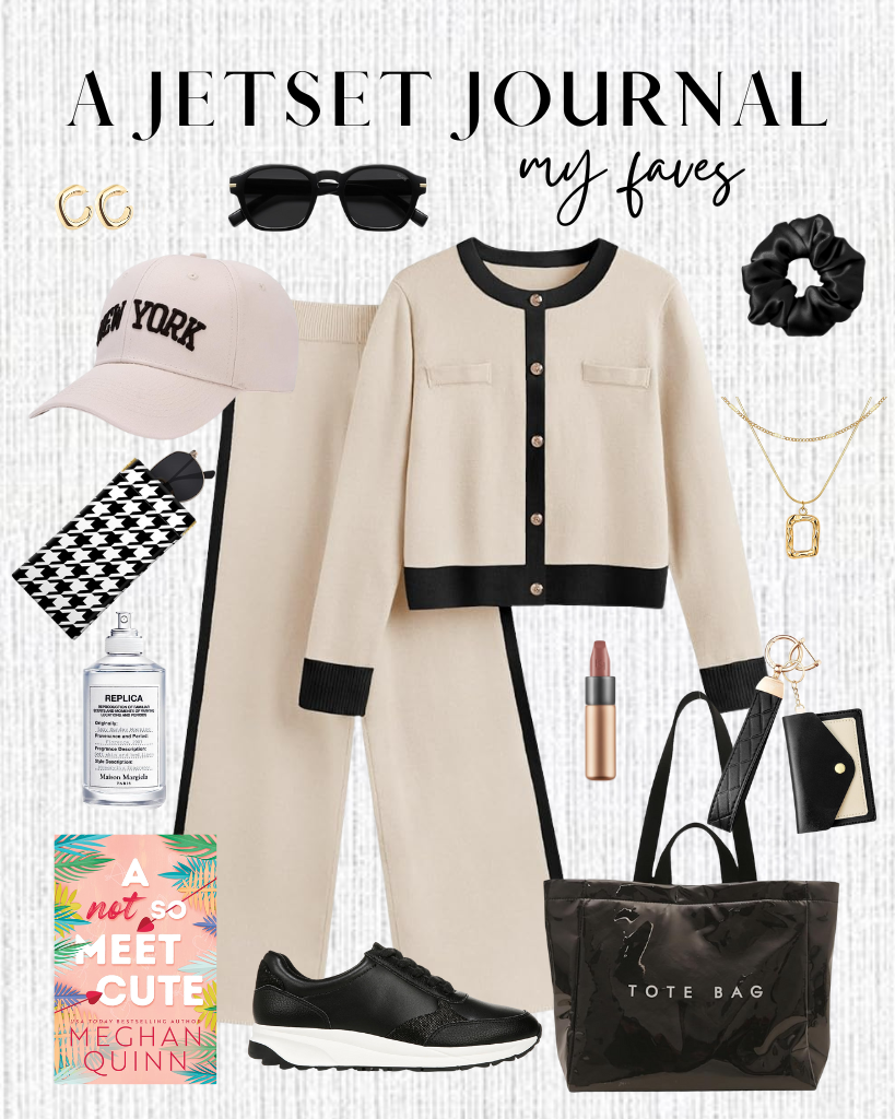 What should you pack in your tote bag? First of all, I love a sunglasses case like this black and white soft case to put my SOJOS sunnies in. This wristlet with a wallet and keychain combo fits your cards perfectly and matches the black tote bag with ease. Add this perfect lip shade by Kiko Milano to your bag after applying. And then pack your current read, of course! Right now I’m loving A Not So Meet Cute by Meghan Quinn.
