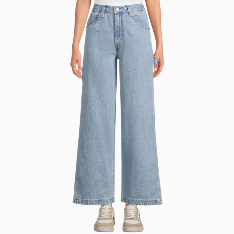A perfect outfit top and bottom in this post is the black sleeveless swing top. It has a flattering cut and the loose fit is effortlessly cool. Pair with these Levi’s Cinch Baggy Carpenter Pants. The wide leg is so in right now, and the light wash is a great contrast with the black tank. This look is comfortable and fashionable, the best combo!