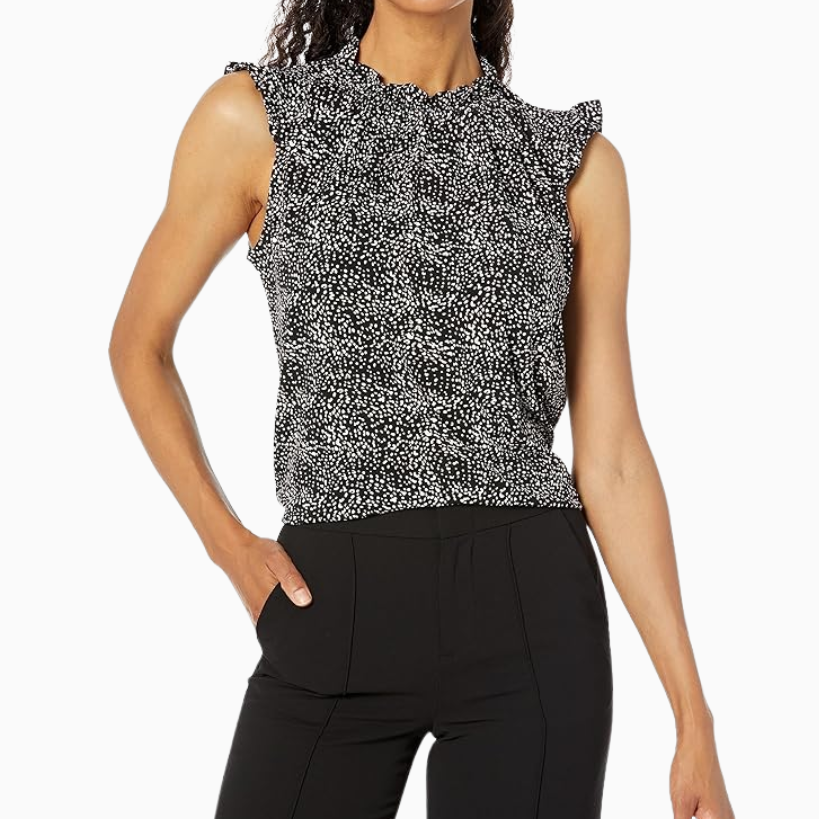There are so many different tops to choose from on Amazon, I’ve rounded up some favorites that are perfect for work. This triple v-neck sleeveless blouse is great for warmer months at work. Same with the Adrianna Papell Ruffle Mock Neck Tank in a black and white pattern. Both can be worn on their own or underneath your favorite blazer. The long sleeve v-neck collared blouse by Prettywear is an absolute classic. I love it in black, but it also comes in multiple other color options to match your personal style.