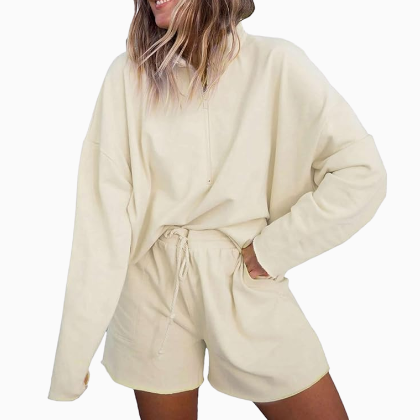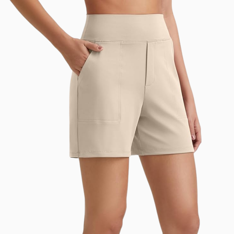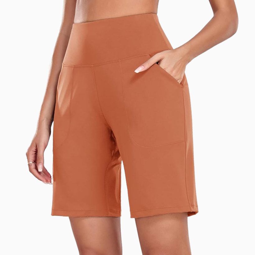 These lightweight drawstring pants are comfy and trendy. Wear with your favorite tank, tee, or graphic crewneck for a fashionable look that is insanely comfortable. For warmer weather, shop these flattering shorts or a skort in this super pretty shade of orange. I love the look of a mini skirt that has shorts underneath to give you that athletic and feminine look at the same time.