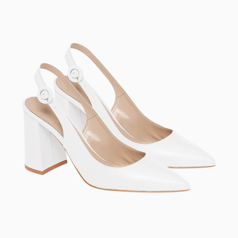 The right pair of shoes is important not only for the look of your outfit at the office, but to be comfortable being on your feet at work all day. Grab a pair of neutral loafers like these linked below, or some low heels. I like these pointed toe white slingback heels for a pair that matches with anything.