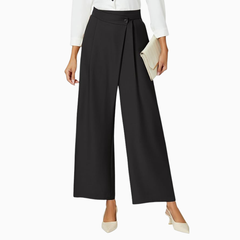A good pair of trousers is something that can be worn every week at the office. I like having a light neutral pair and a dark park. Like these beige high waisted crossover trousers. They’re SO comfortable and lightweight, you’ll reach for them over and over again. Or these black high waisted pleated wide leg pants with an asymmetrical button. Either of these pants would look perfect with any of the blouses I have linked in the post below.