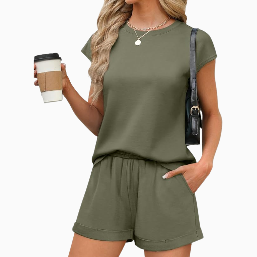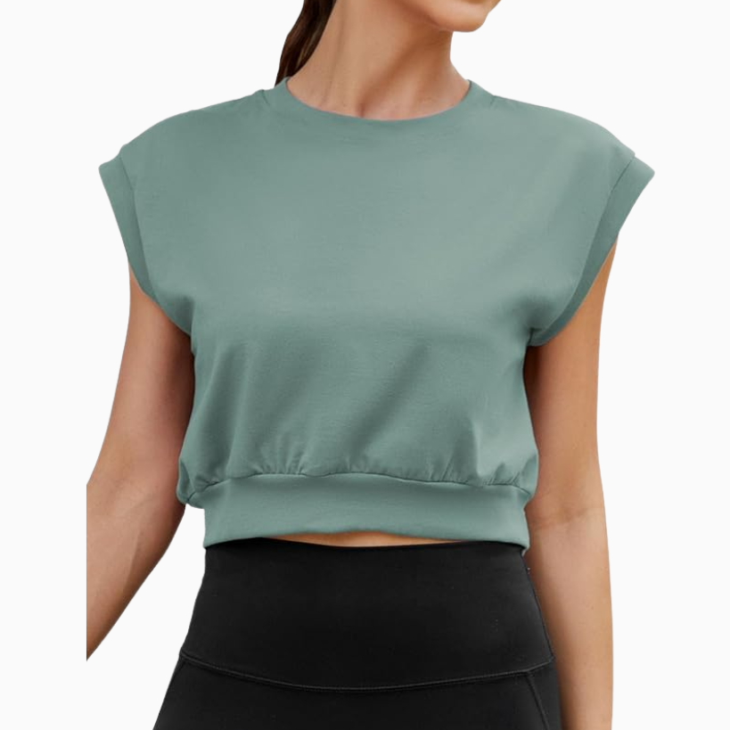 I’m loving this sage green color. It gives you a pop of color while still matching with all of your neutrals. Like this cropped breathable short sleeve tee in green would look so cute paired with these beige joggers. Or take these dark green high waisted leggings and sports bra, and put a beige sleeveless top with keyhole back to match. The options are endless!