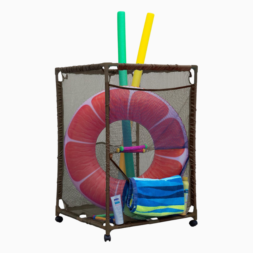 Store all of your pool toys in an organized basket like the one I have linked here. It keeps your pool essentials in one easy place to grab and go for a dip.