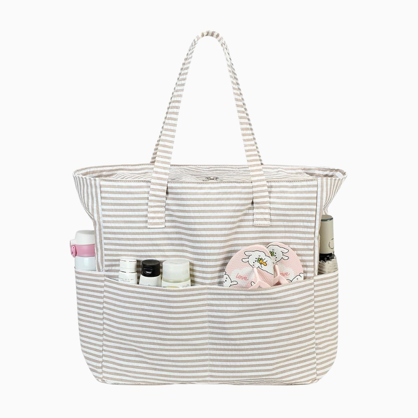I personally love having a waterproof bag so that way if anything gets wet, you know it’s protected. Especially if you’re going to the beach, you want something that’s easy to clean so that all of the sand doesn’t get stuck in the fabric.