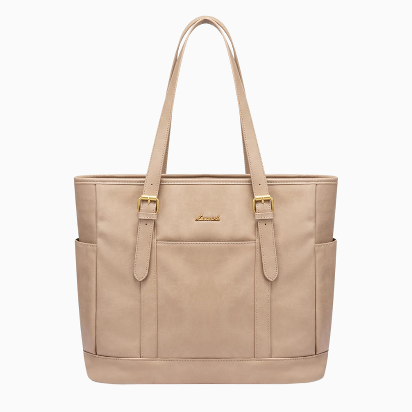 Style your work bag to be either black or neutral to match with your outfit. Make sure you have a tote that can carry your laptop and any other essentials you need to bring back and forth into work each day. Then put on something like a dainty gold necklace that’s the perfect accessory to wear with your work outfit.