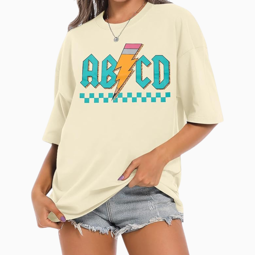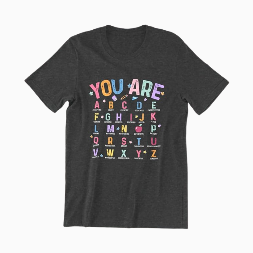 I love when tees have trendy vibes to them but still convey the message you want. Like the “In My Teacher Era” shirt is so on trend this year. Or the “Bruh We Back” will definitely get a laugh out of your older students! Another one that I love is the play on ACDC with the ABCD with a pencil for the lightning bolt. There are so many clever graphics you’re going to have trouble picking just one!