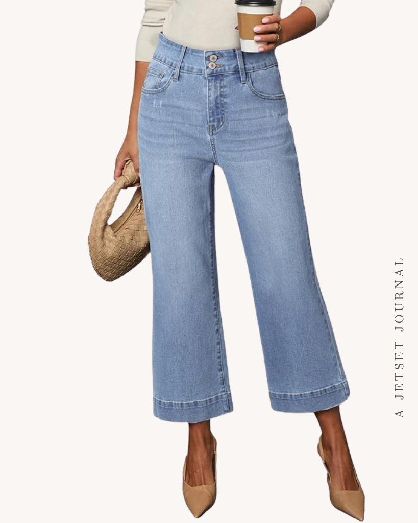 Pair your favorite sweaters and cozy knits with a pair of jeans. I love a super dark wash for the cooler months. A pair of high waisted wide leg jeans is so flattering and trendy. You can wear these with anything and dress them up or down with ease.