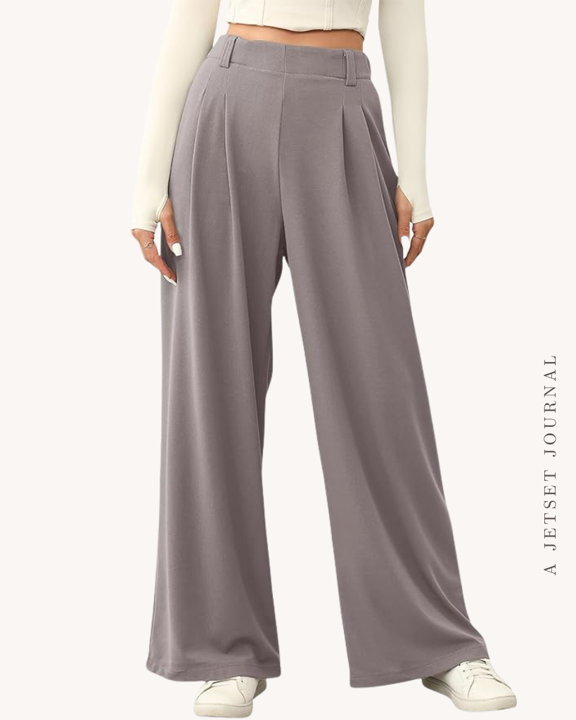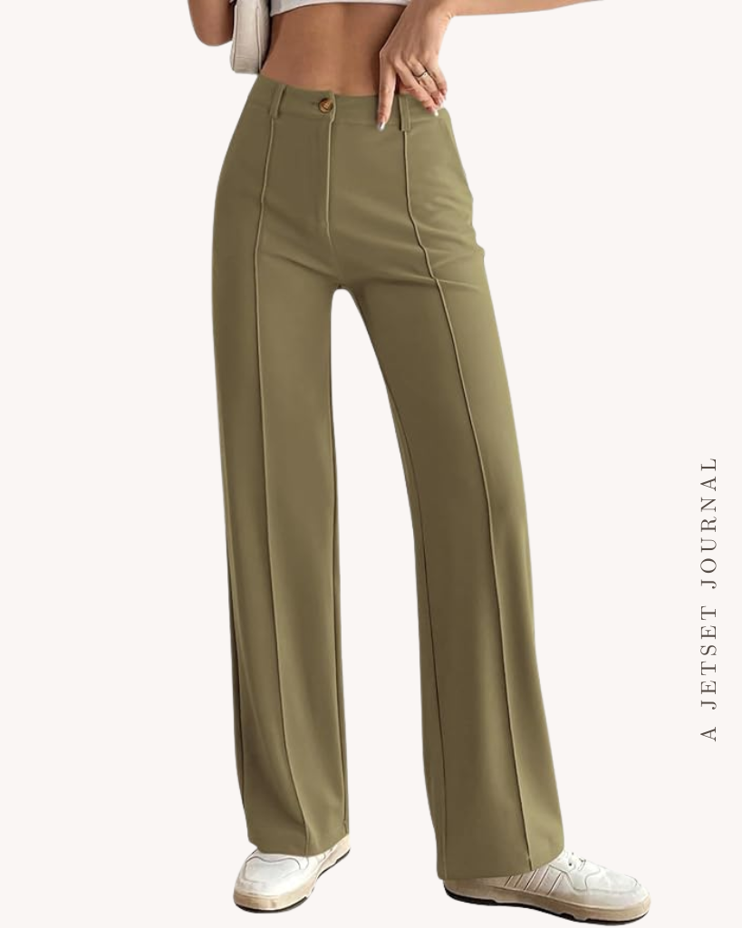 Mix it up from just always reaching for jeans by styling some cute new looks with a pair of trousers. I love these high waisted pleated trousers or this pair of drawstring wide leg pants that can be elevated with the right accessories.