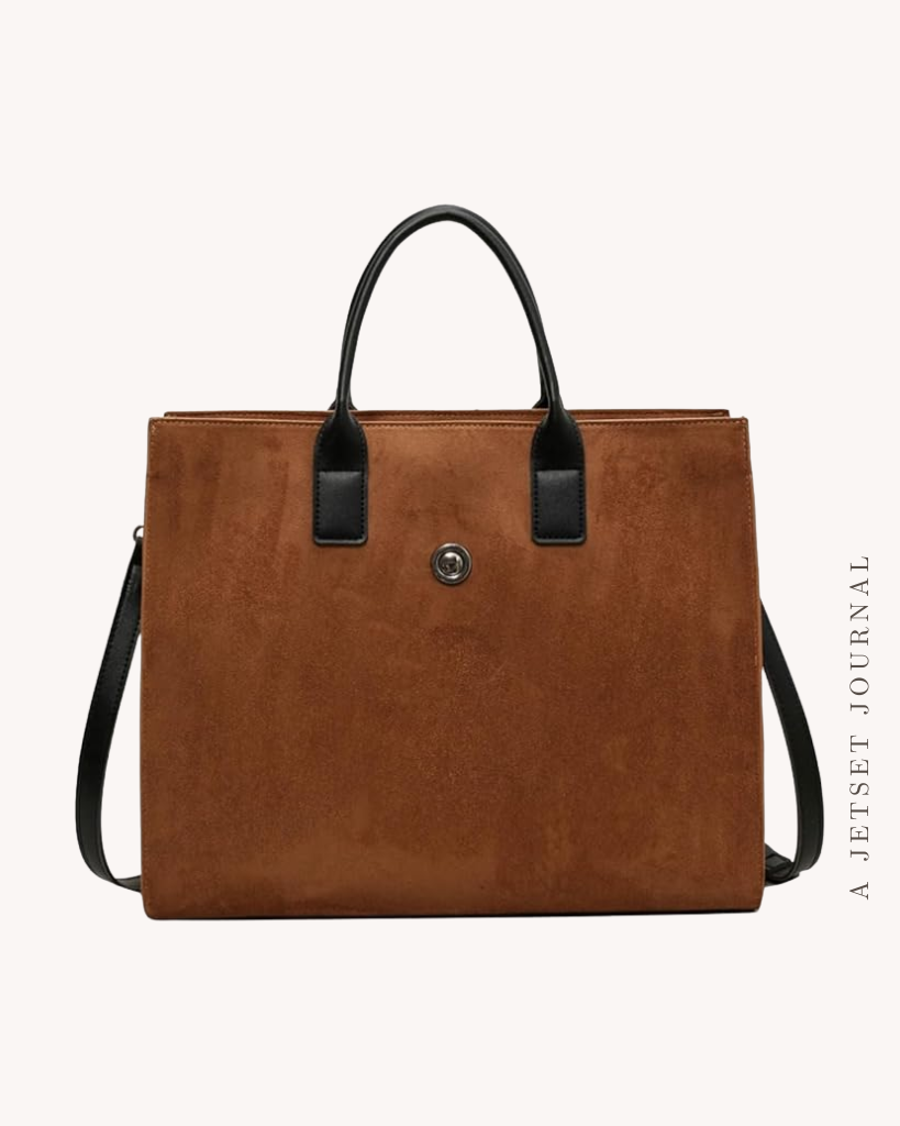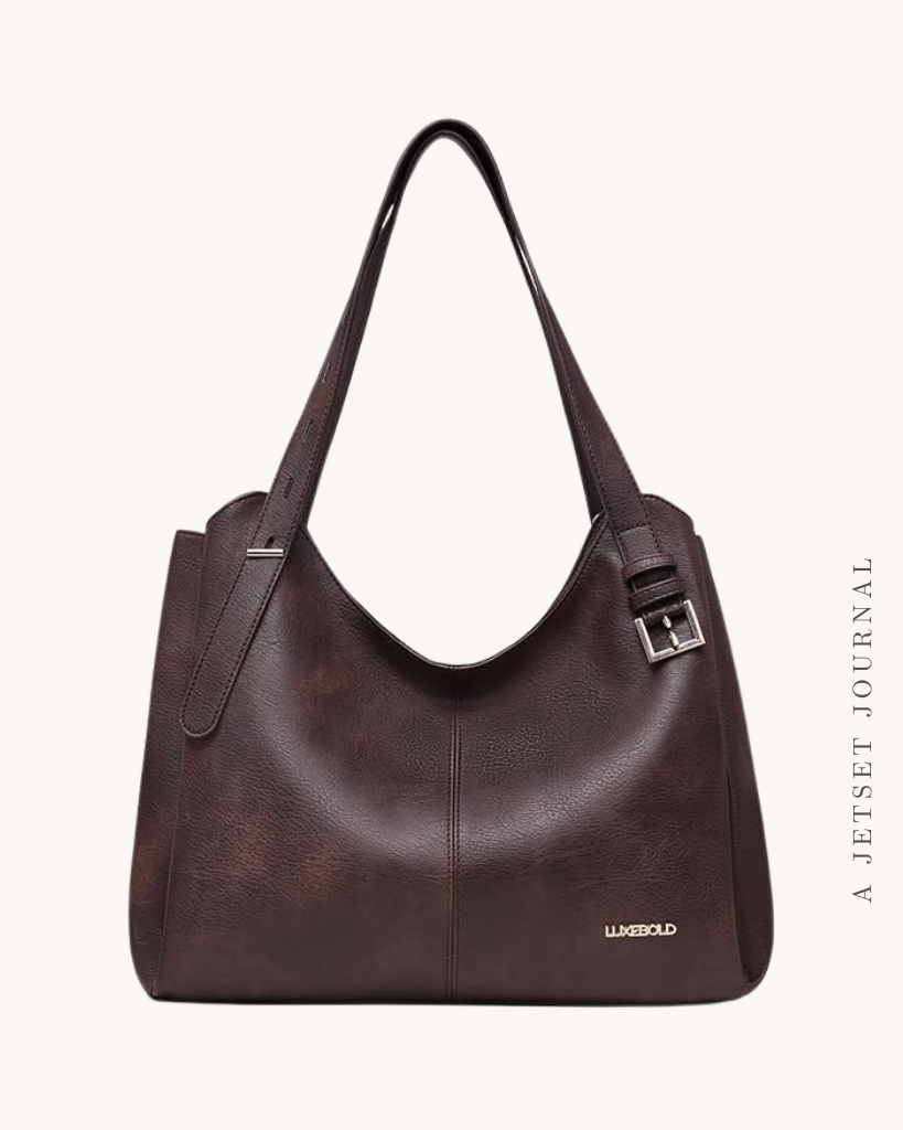 Style your looks with different bags and shoes to give them a whole new vibe. I’m loving these ankle boots in either a brown chunky heel or a low heel like this black pair. You can wear them with jeans, leggings, trousers, skirts or dresses. The options are endless! And then this dark brown slouchy shoulder bag is perfection.