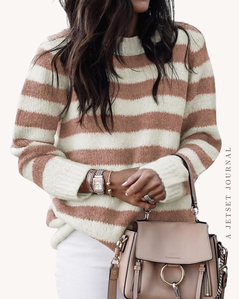 It’s sweater season! Shop for some new cozy sweaters to add to your collection. I love this casual striped crewneck or an oversized chunky knit sweater. A long cozy open front cardigan is a great layer to have as well. Pair any of these with your favorite jeans or trousers, they’re easy to dress up or down!