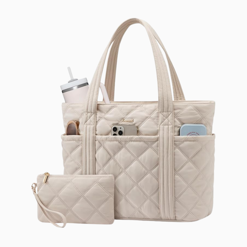 In this post, I have two different kinds of luggage in case you’re in the market for a new one. These large roller luggage bags are great for the airport and having to roll in and out of your hotel. For a bag to have with you, try a large tote bag with lots of compartments like these that can fit your water bottle, phone, accessories, tech, important documents, and more!