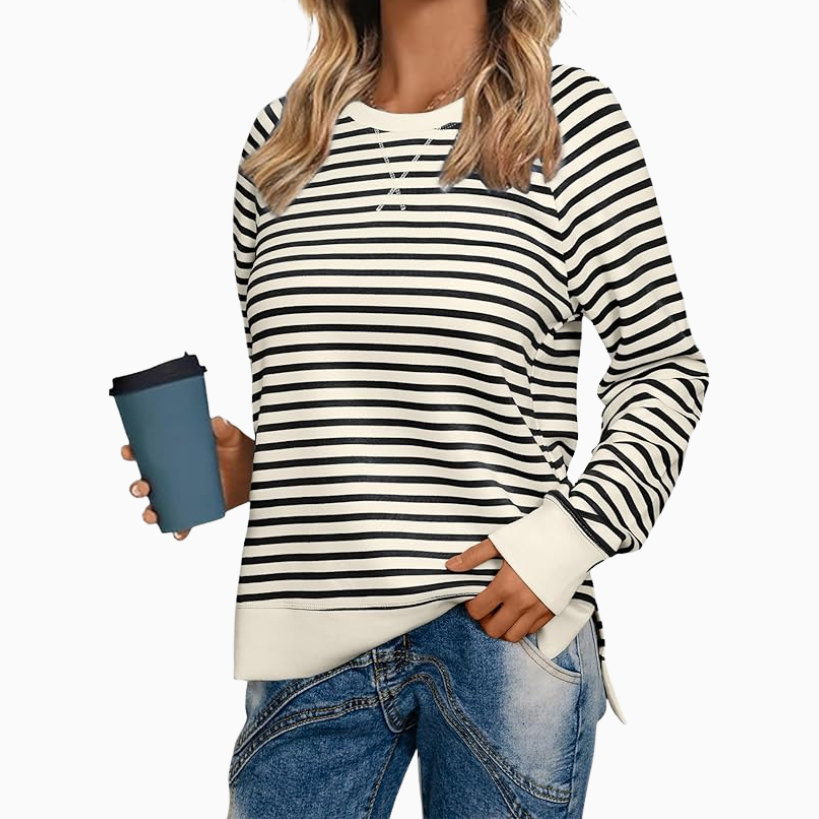 A long sleeve fitted tee is the perfect base layer for colder weather. You can do a basic crewneck or a turtleneck with your favorite pair of bottoms. Then add a sweatshirt, vest, or jacket on top and you’re layered up and looking cute!