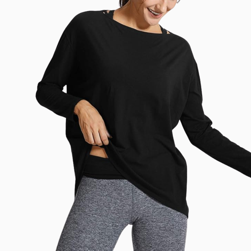There are various options for layers to throw on over your favorite athletic tees and tanks. Try a full zip, quarter zip, or half zip. Or just a classic crewneck pullover! I love an oversized fit for these to give you that effortlessly cool and casual look. Plus a bunch of these come in different colors, too!