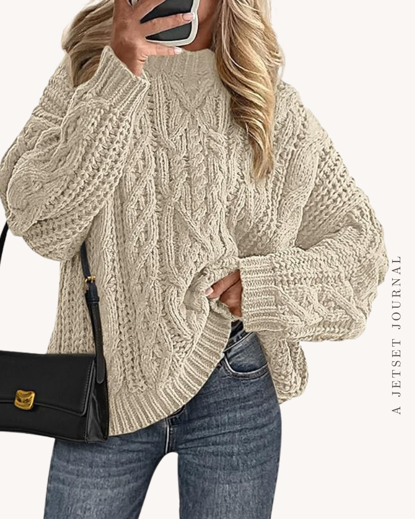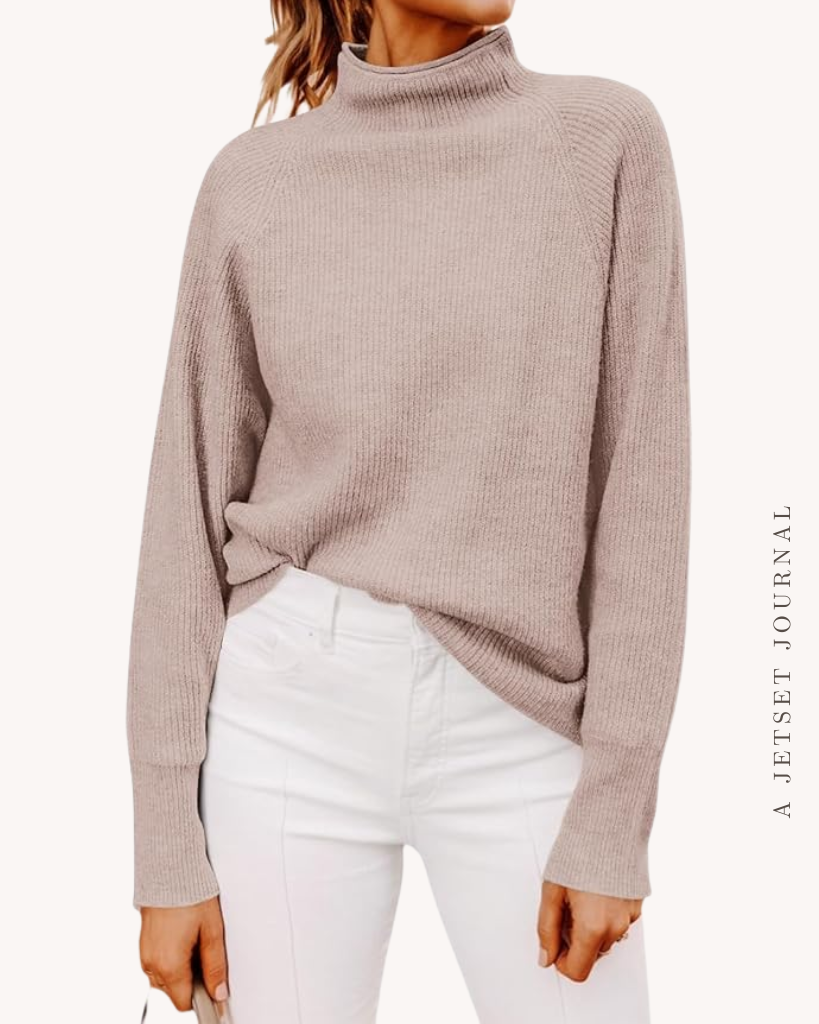 Speaking of sweaters, Amazon has a ton of options for you to shop! Crewneck, mock-neck, turtleneck all for various fits and necklines. As well as lightweight knits and chunky cable knits. Most of these come in different color options so when you find a style you like just shop the link and see if any other colors catch your eye.