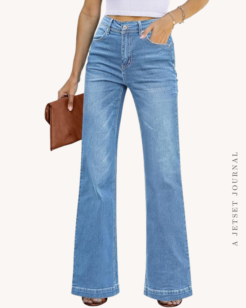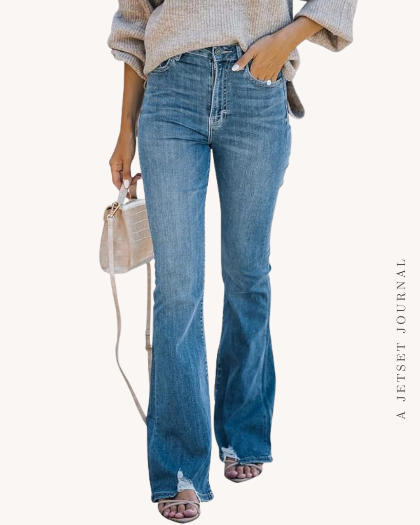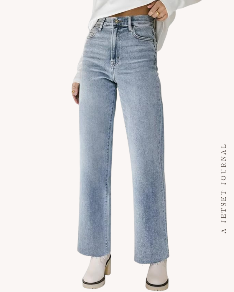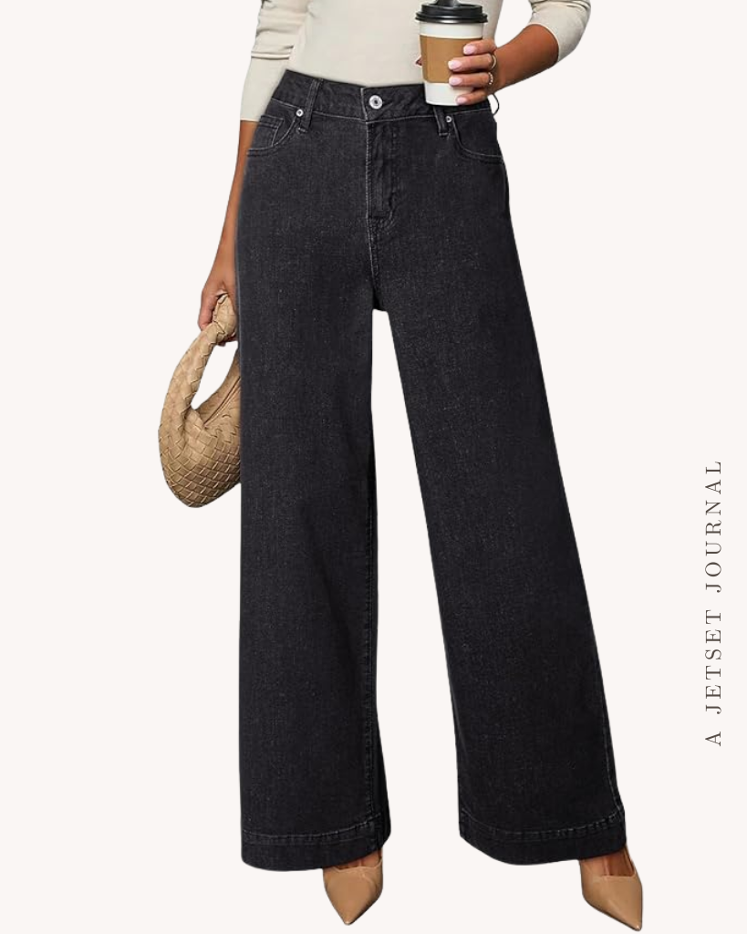 I love a pair of super dark wash black jeans for this time of year. These high waisted wide leg jeans in a dark wash are so chic and can easily be dressed up to give your look a little more of an elevated vibe. Maybe for going out at night or to a nice dinner. Wear with ankle boots or heels! There are a few other cute pairs of jeans in various denim washes and styles as well.
