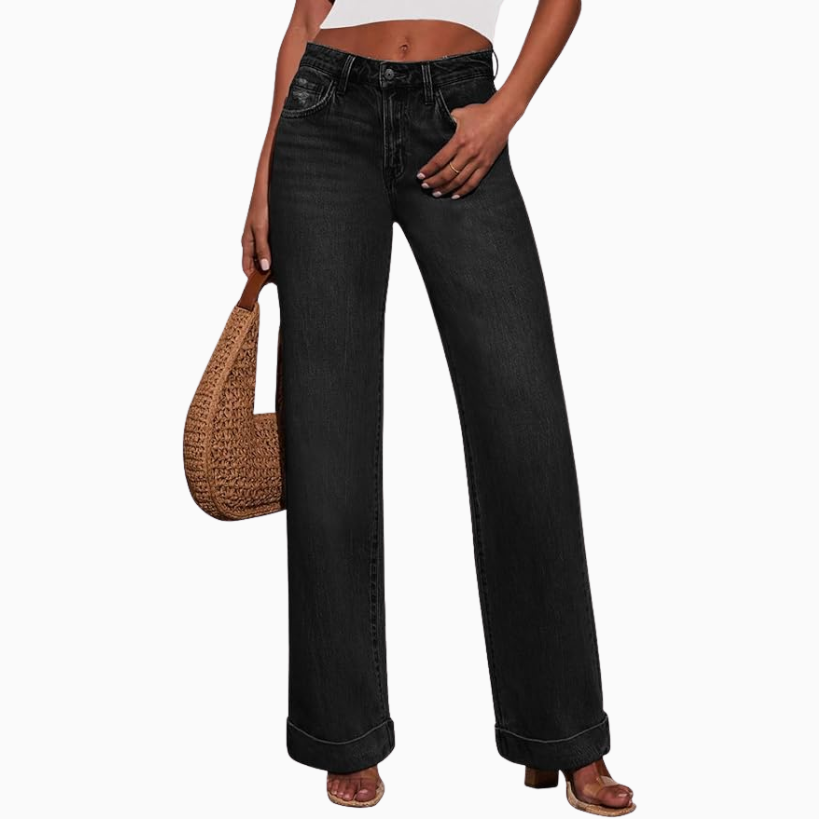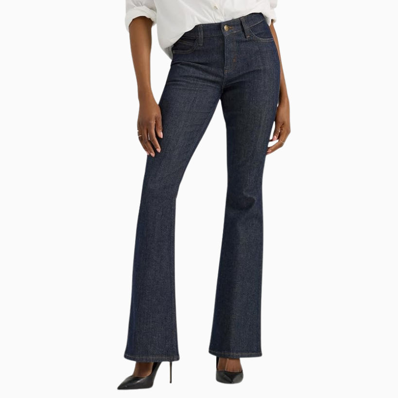 Speaking of jeans, I usually opt for a dark wash this time of year. These jeans from Lee have a mid ride fit and a flare design you’re going to love. The super dark wash is so flattering. I also love a black wash denim for dressier looks or just a darker color palette with your outfit. Like these high waisted wide leg jeans that are so on trend.